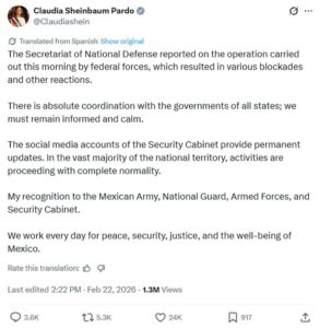 2026-02-22 12:29:00 In a statement, an operation by Air Force aircraft and the Special Immediate Reaction Force of the National Guard is required. México City / Excélsior.- The Secretariat of National Defense